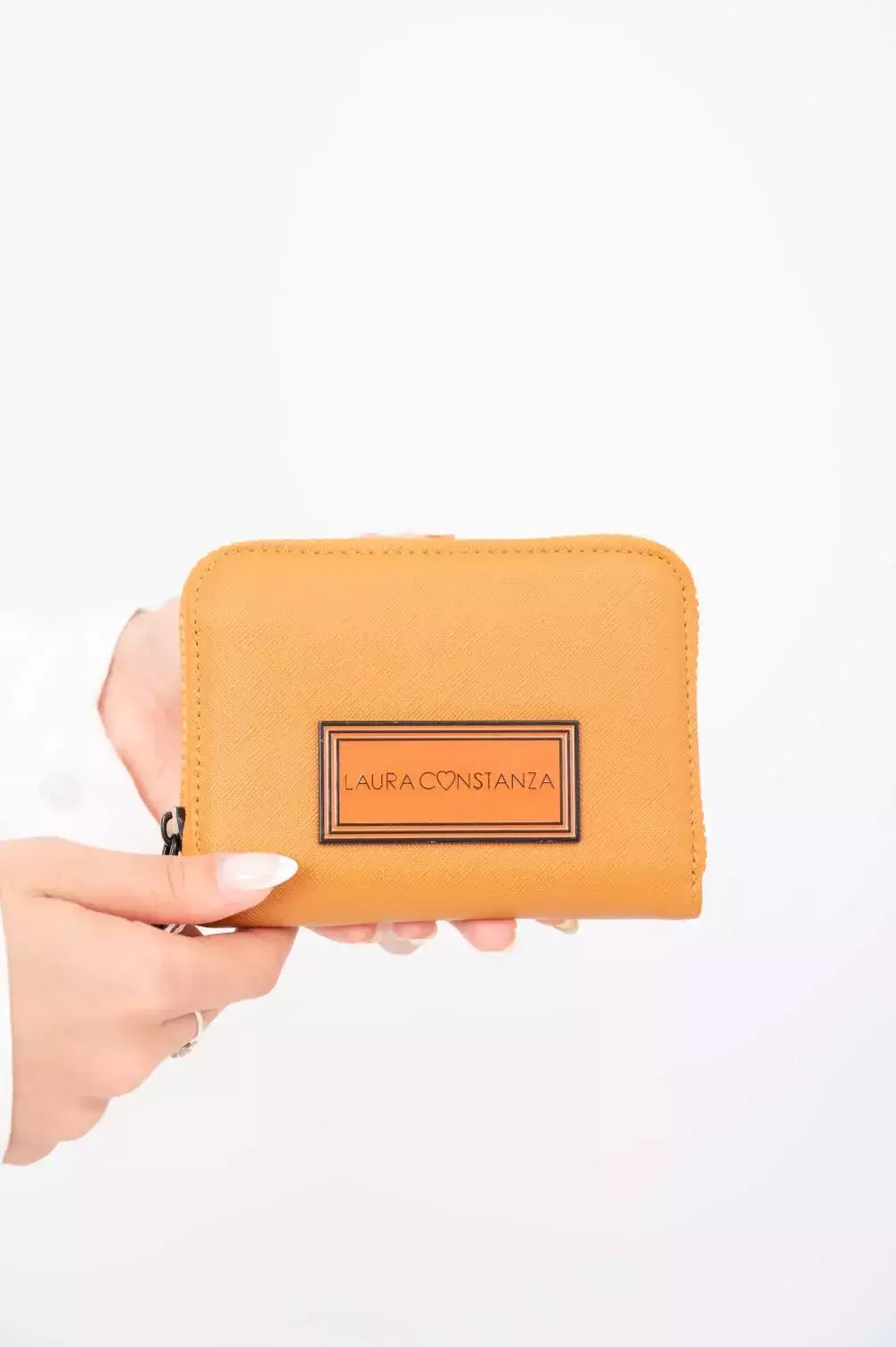 Con unas dimensiones de 10,5 cm de largo, 14 cm de ancho y 2,4 cm de profundidad, es ideal para llevar en cualquier bolso. Su logo metálico añade un toque distintivo a este accesorio esencial.